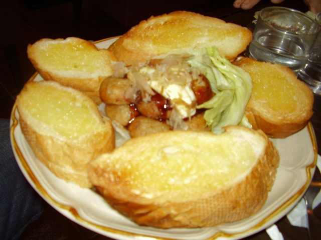 ガーリックたっぷりのフランスパンとたこ焼き。