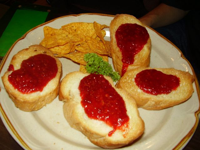 上の赤いのはチリソースだと思われる。